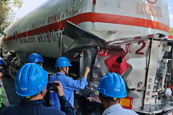 “G60沪昆高速萧山东段上海方向5公里处,有一辆天然气储罐车发生交通事故,请尽快协助支援!”