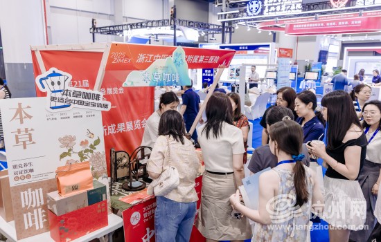 在本草咖啡体验区,浙江省中山医院与杭州卡布奇诺咖啡品牌管理有限公司共同研发的四款中药本草咖啡成了展会上的“网红”产品,其中一款名为“纤纤”的本草咖啡受到减肥人士热捧。这种将药食同源理念与现代饮品文化相结合的创新产品,让不少人惊艳。尝鲜的年轻人纷纷举起手机拍照,称这是“最适合发朋友圈的养生饮品”。