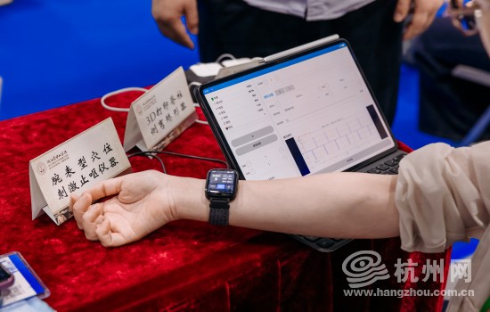 不远处,几个年轻人正在试戴腕表型穴位刺激止呕仪器。“这个太适合我这种容易晕车的人了,”一位姑娘兴奋地说,“设计得很时尚,完全看不出是具有健康干预功能的科技产品。”