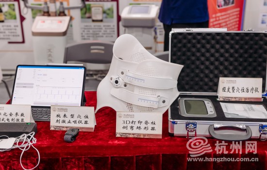 在浙江省中山医院展区最显眼的C位,方氏经皮暨穴位治疗仪前围满了人,“这款治疗仪‘很聪明’”,工程师讲解道,“它融合数百项临床研究成果和智能处方系统,既保持了精准刺激疗效,又实现了操作简单化,能有效帮助慢性疼痛、中风后软瘫患者缓解痛苦,可供家庭使用。”
