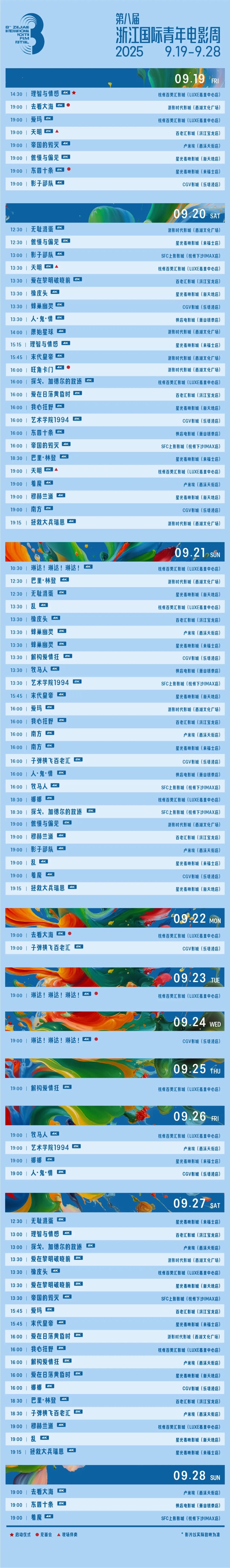 值得一提的是,为让更多影迷朋友共享盛会氛围,推动电影与文旅消费的深度融合,“跟着电影游浙江 品美食”发布活动杭州站将于9月19日同步启动。活动现场将推出新一批电影票根联动旅游景点、特色餐饮的专属优惠,让观影之旅延伸至诗画山水与人间烟火之间。与此同时,9月19日至30日,浙江省将增发电影消费券,以实实在在的惠民举措进一步点燃大众观影热情,助力电影市场持续升温。