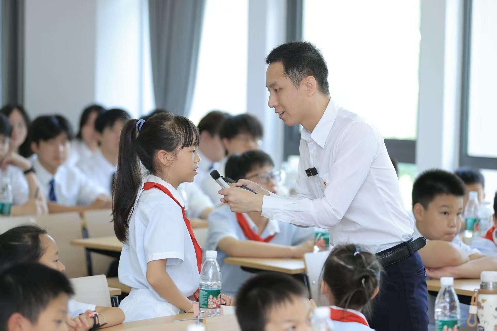 课堂一改传统单向传授模式,充满了双向互动与探索的乐趣。大学生担任“临时辅导员”,为小学生答疑解惑;小学生充满想象力的提问,也为大学生带来全新思考。