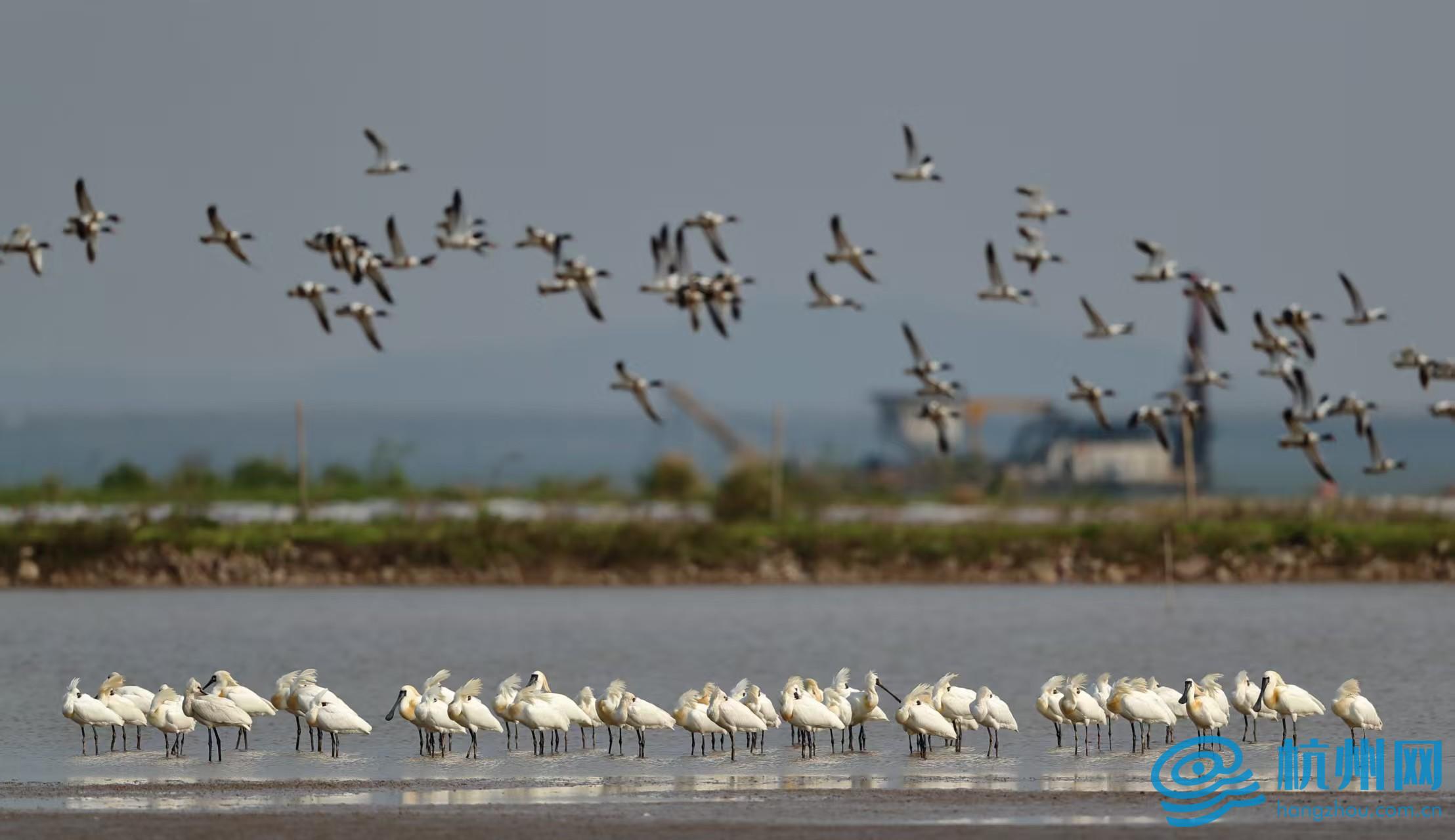 “漩门湾国家湿地公园湿地率达90.85%,是中国生态保护最佳湿地,其经历了汪洋大海到荒芜滩涂,再到如今的休闲胜地,且已成为鸟类的最爱。”玉环市公安局新城派出所所长黄世平向记者介绍,“每年的11月末,从西伯利亚飞往南半球的各种鸟类,必须来此打卡。原因很简单,漩门湾国家湿地公园位于东亚-澳大利亚候鸟迁飞路线上,也是我国候鸟迁徙路线的东线,是大量候鸟重要的停歇驿站和越冬地,鸟类资源丰富。”