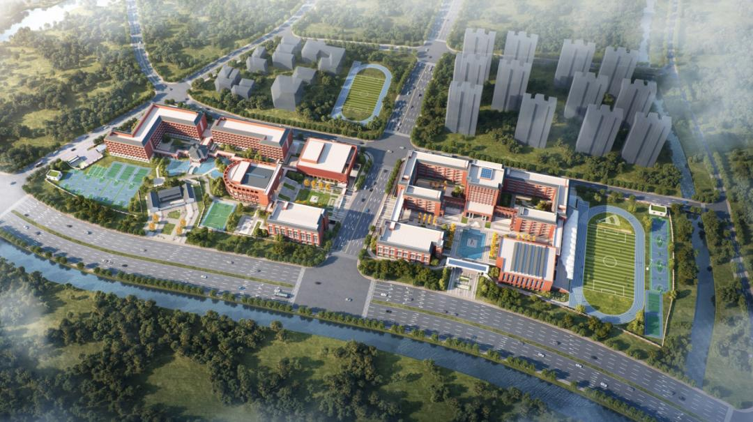 总建筑面积100961平方米,办学规模为60班。今年3月正式启动建设,预计明年9月投入使用。