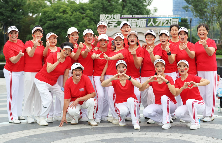 六点整,朝阳跃过树梢,将金色的光芒洒在这片跃动的中国红上。近百位身着统一红衣白裤的健身操爱好者整齐列队,手中挥舞的五星红旗在晨风中猎猎作响。这支特殊的国庆晨练队伍里,有凌晨才下夜班就赶来的护士,有安顿好家里老人匆匆跑来的教师,还有特意歇业半天的小店老板。