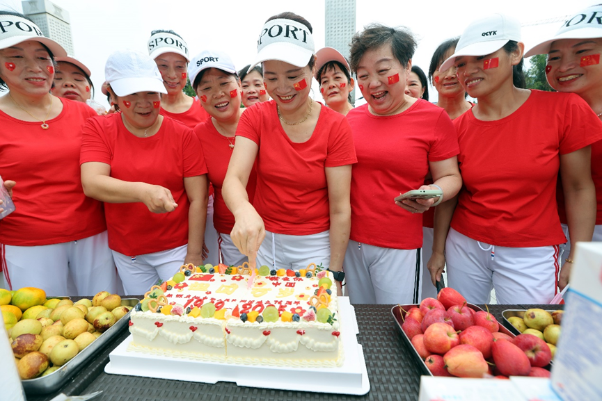 “快来尝尝我特意挑的葡萄!”萍姐热情地招呼着,大家围在长桌旁,分蛋糕、盛豆浆、剥鸡蛋,说说笑笑好不热闹。众人争先恐后地要带奶油花朵的那块蛋糕,细品清甜多汁的西瓜,互相拍照留念——这一张张幸福的笑脸,正是对祖国生日最美好的献礼。
