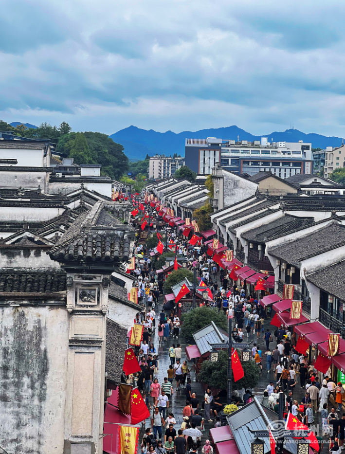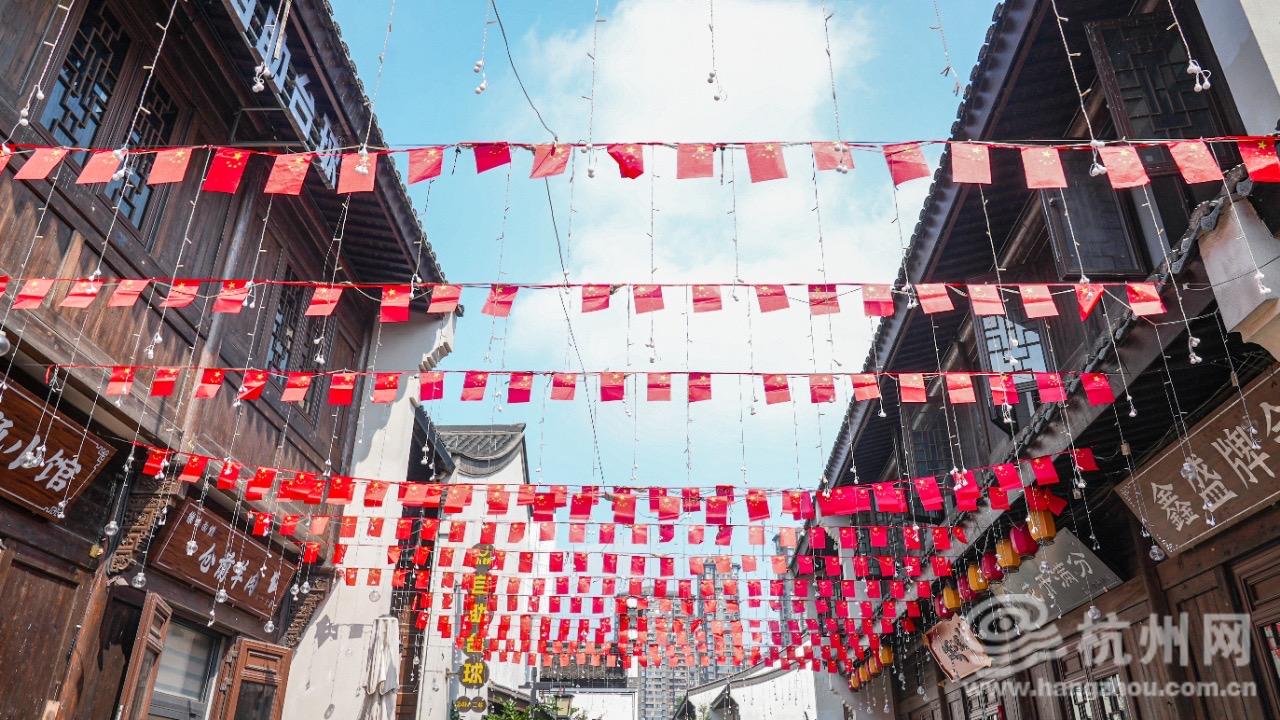 金桂飘香度国庆,古韵新风颂华章。连日来,杭州市多个历史文化街区换上节日盛装欢庆新中国成立76周年,五星红旗与千年文脉交相辉映,在青石板路与古朴建筑间绽放出最美的“中国红”。