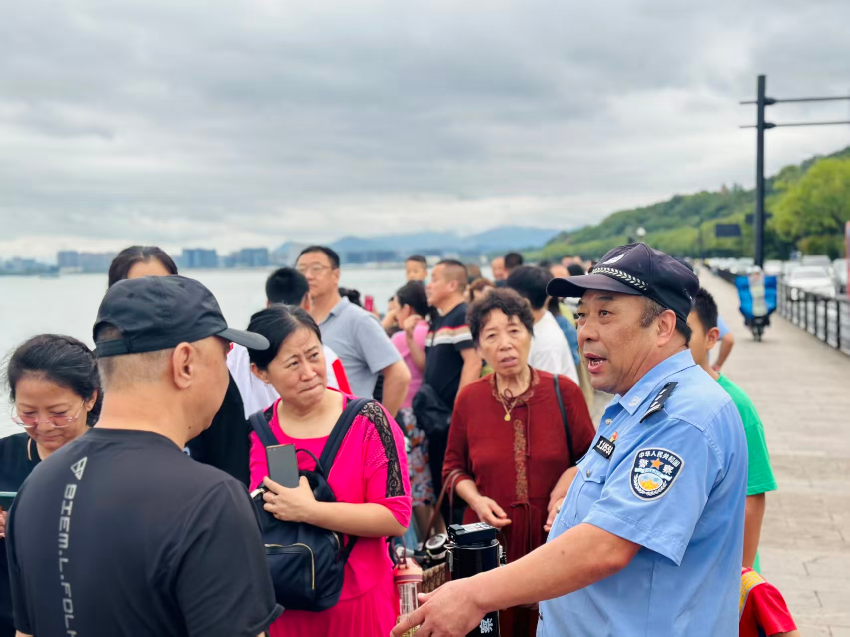 钱塘江九溪段虽处杭州市区上游,却因江道西折南转的急弯,催生出声势震天的回头潮与冲天潮。每年潮汛季,这里都是游客云集的观潮点,而堤岸上有个身影,二十年来比潮水更准时——景区分局民警张志宏,像江畔矗立的古石塔,任凭潮起潮落、人来人往,始终稳稳“钉”在潮汛安保的岗位上。