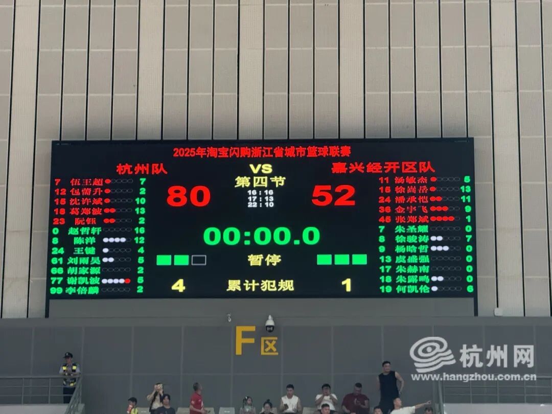 10月4日晚上,浙BA城市争霸赛第8轮继续进行,杭州队首次将主场移师临安,最终以80-52力克嘉兴经开区队,豪取小组赛7连胜(少赛一轮),继续保持全胜,和同样不败的温州队并列A组第一。