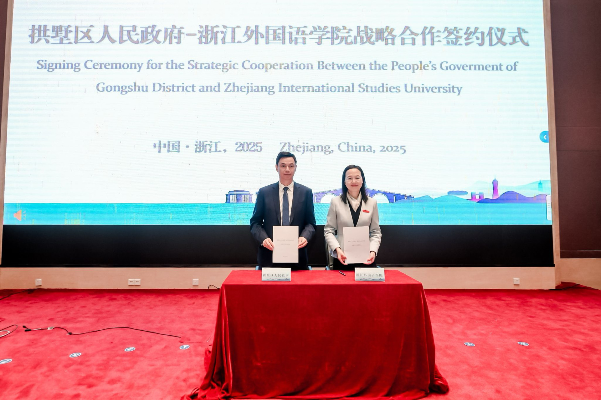会议期间,杭州市拱墅区人民政府和浙江外国语学院举行战略合作签约仪式。根据合作协议,双方将共同推动社科赋能,打造“运河文化示范区”“国际传播先行区”等,为地方经济高质量发展和高校高水平建设增添动能。