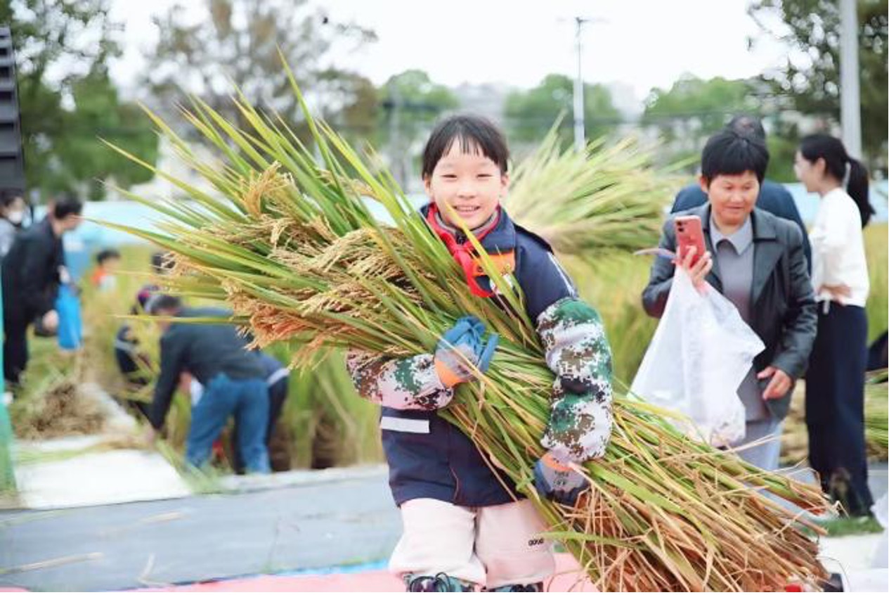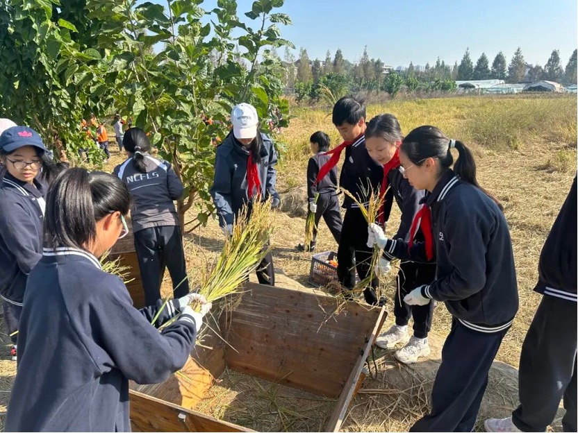 全校师生共同参与,在割稻、拾穗、观察作物生长等劳动实践中,同步探索科技助农的奥秘,感悟“粒粒皆辛苦”的深刻内涵,将思政教育融入田间地头的生动课堂。