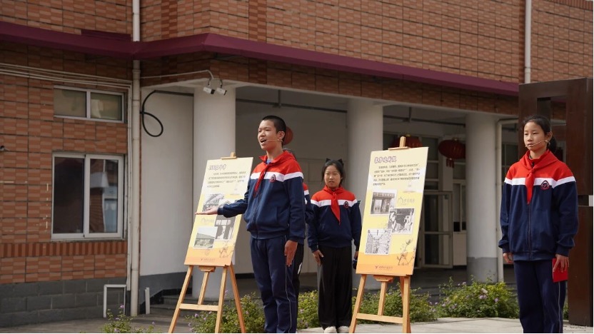 上午的晨会时间,学校内的“民”星舞台变成了“故事剧场”。随着音乐渐缓,学生宣讲团挺直腰板,用清亮的声音讲述棉花与学校的深厚联结——原来,人民小学由杭一棉子弟学校与浙麻纺织厂子弟学校合并而来,承载着杭州近代民族工业的记忆。