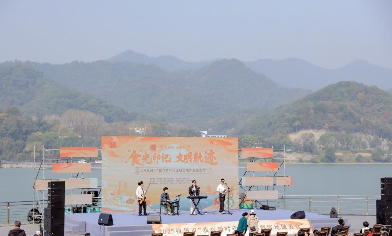 除了舌尖上的盛宴,活动更融入多元文化表达,让文明内涵更加丰富。原创诗朗诵深情诠释杭州“山水与文明共生、传统与现代交融”的城市特质;杭州国际青年创意营成员、杭州亚残运会开幕式暖场歌曲《爱的天堂》英文版原唱、浙江工业大学国际学院留学生马悠柔(摩洛哥籍),通过跨语言演绎传递文化包容;杭州市市歌《梦想天堂》的英文改编版,以国际视角展现城市魅力;浙江音乐学院、杭州师范大学等高校优秀歌手还与桐庐本土演员联袂呈现专场音乐会,让美食与音乐碰撞出文明火花。