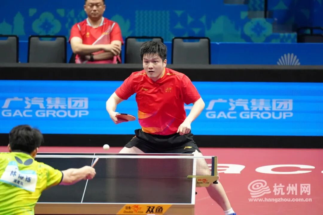 这场决赛,樊振东的开局并不理想,首局一度以4-9落后,但在关键时刻体现出了“大满贯”的实力,打出一波7-0,拿下第一局。第二局,樊振东取得了3-0的不错开局,但林诗栋后发制人,以11-8扳回一局。正当很多人都以为樊振东将陷入苦战时,他爆发出了强者的气势,随后三局分别以11-5、11-3和11-4取胜,没有再给林诗栋留下任何翻盘的希望,再次登上全运会男单的最高领奖台。