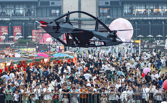 低空出行。2025年10月7日,杭州大运河杭钢公园上空,多款飞行器、双座多旋翼航空器等“黑科技”产品集中亮相,让市民游客沉浸式感受“低空出行”的无限可能。