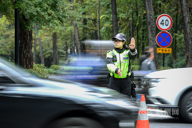 交通智管。2025年11月9日,绵绵细雨中的杭州西湖景区车流穿梭,在灵隐路与龙井路交叉口,杭州交警景区大队灵隐中队的执勤队员们佩戴着全新“装备”AI智能眼镜,正有条不紊地开展交通管理工作。