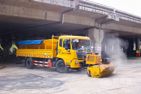 为全面检验冬季应急保障能力,扎实做好城市道桥隧抗雪防冻工作,12月12日下午,杭州市综合行政执法局(市城市管理局)在之江大桥桥下空间成功举办2025年度全市城管系统抗雪防冻应急演练。本次演练以“砺剑寒冬,护桥安行”为主题,通过实景实操全面锤炼队伍应急能力,全力保障城市道路桥梁隧道等关键设施在严寒天气下的安全运行。