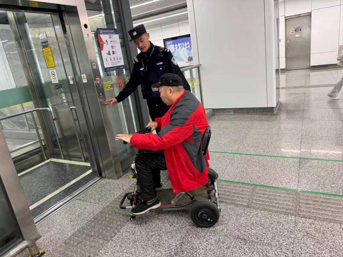 梁飞将许大伯安全送至新汉路站垂直电梯口。临别前,许大伯再次向梁飞表达了诚挚的感谢。