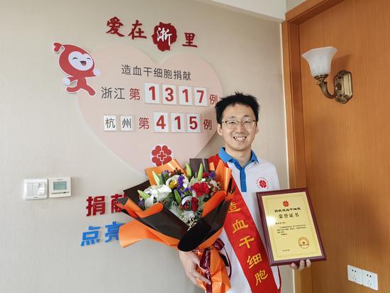2017年12月,在生日当天再次献血时,他看到造血干细胞配型成功的相关报道,深受触动,主动留存血样,加入了中华骨髓库。“当时就觉得这件事很有意义,期待有一天能帮到别人。”楼华天回忆道。