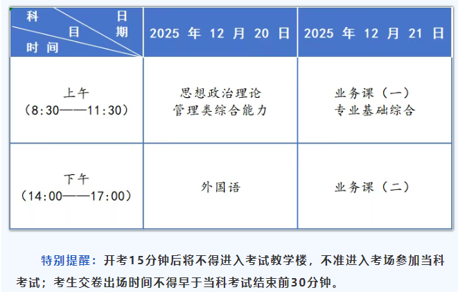 考生可在12月19日15:00之前凭准考证入校查看。考生休息室在A3-117、A3-121、A3-125。