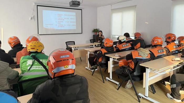 为确保课程内容精准对接新就业群体的所思所想所需,杭州市团校在前期进行了新兴领域青年群体调研。本次课程一改单向的理论宣讲模式,由杭州市团校副教授赵睿诗老师把党课转化为一场围绕快递小哥们工作生活展开的“暖心座谈会”。课程设计紧密围绕其职业特性,内容涵盖了跑单安全防护、高峰时段情绪管理、配送纠纷理性处理等实用知识,并分享了同行成长的正向案例,有效回应了他们在职业发展与城市融入中的现实关切。