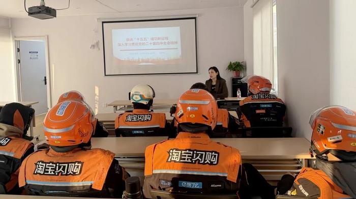 为贯彻落实党的二十届四中全会精神,深入贯彻落实习近平总书记关于青年工作的重要思想,将党的关怀送至基层一线青年,12月18日下午,杭州市团校联合翠苑街道塘苗社区,创新性地将一堂特别的“青春赋能”党课《奋进“十五五” 建功新征程——深入学习贯彻党的二十届四中全会精神》,安排在了新就业群体日常歇脚的社区服务驿站内,为外卖小哥等奔波在城市街巷的新就业青年群体送去了一份暖心关怀与精神支持。