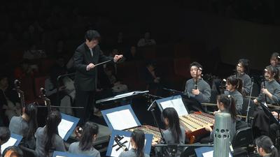 青年作曲家臧婷的民族管弦乐《春之舞》在指挥张正宸的引领下,仿佛春风拂过,让整个乐队的音符都“舞动”了起来,拉开了民乐篇章的序幕。竹笛与扬琴铺陈出明亮春意,弦乐声部的力度层层递进,精准托举起作品中“奋斗与希望”的主题。年轻乐手以自然的朝气,让这幅春耕图景显得生机盎然。