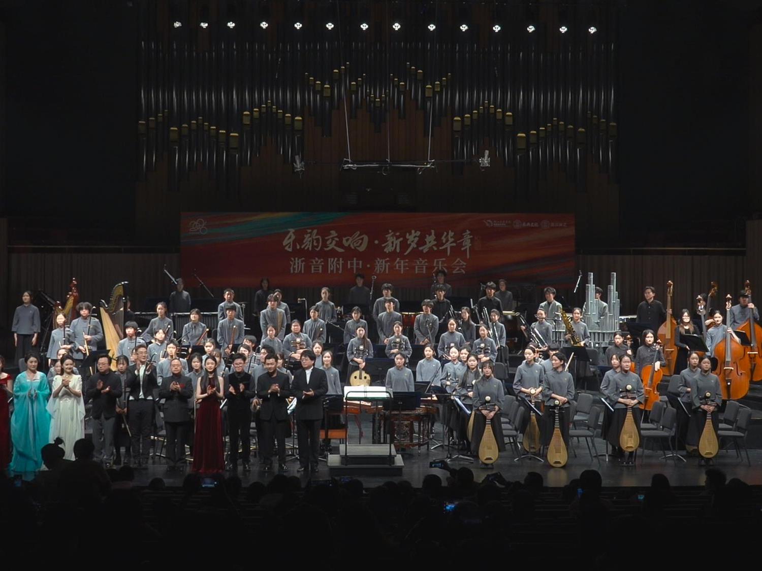 12月28日晚,浙江音乐学院附属音乐学校“乐韵交响,新年共华章”新年音乐会在浙音音乐厅启幕。本次演出由浙江音乐学院附属音乐学校与浙音乐典文化联合主办,汇聚了140名师生参与演出。值得一提的是,浙江音乐学院附属音乐学校交响乐团和国乐团首次同台亮相,这两支乐团均为省内编制最完整、专业水准最高的青少年乐团。演出中,西方交响乐与中国民族管弦乐交相辉映,经典作品与当代原创作品同台演绎,充分展现了附中师生的艺术风采与专业水准。