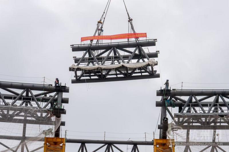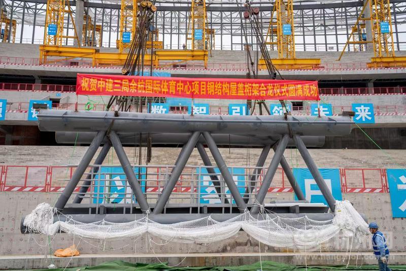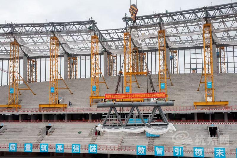 12月31日,杭州余杭国际体育中心项目部,随着最后一榀屋盖桁架精准就位,这座可承接世界杯等顶级赛事的现代化体育场馆正式完成钢结构封顶。