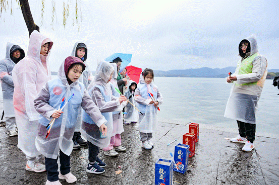 为让毅行更具趣味性与纪念意义,活动沿途特别设置了特色打卡点。西湖边的特色打卡点成为活动亮点,各组家庭摆出富有创意的姿势合影留念,并在互动游戏中考验默契。每完成一项任务,便能获得一张定制“集福卡”。当最终集齐福字时,孩子们脸上绽放出满满的喜悦。
