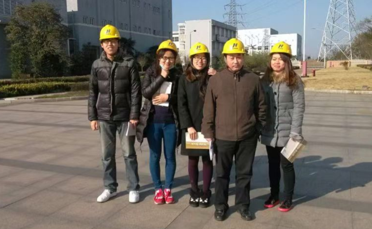 易颜新(右二)带着学生进工厂调研