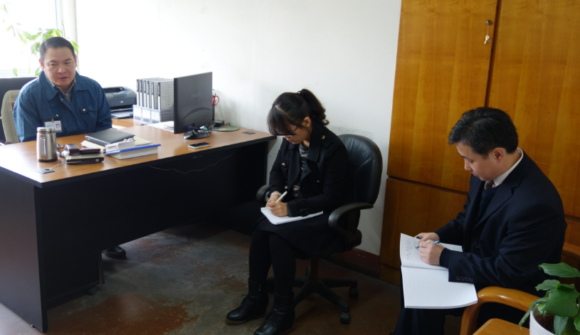 易颜新(右一)带着学生对企业负责人进行访谈