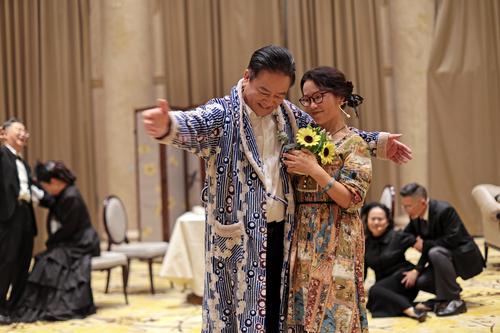 紧接着是《结婚》片段。社长郭波饰演的职业经理人“一平”正与“二女儿”展开对话。15分钟的片段,展现了现代女性在婚姻与自我之间的彷徨与勇气。郭波在医药公司从事管理工作,每周六下午雷打不动参加排练。“台词都是大家背诵的,”他笑着说,“《雷雨》里周萍的台词有4000多字,我们也啃下来了。”