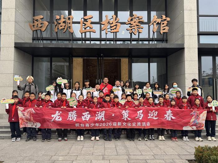 1月28日,“龙腾西湖・策马迎春——杭台青少年2026迎新文化交流活动”在杭州市西湖区启幕。来自台湾地区的舞龙交流参访团与杭州市袁浦小学的师生代表相聚一堂,以中华优秀传统文化为纽带,在一系列丰富多彩的体验活动与文艺展演中,沉浸式感受传统年俗的独特魅力和深厚乡情,让跨越海峡的情谊在迎新春的氛围中愈发浓厚、持续升华。