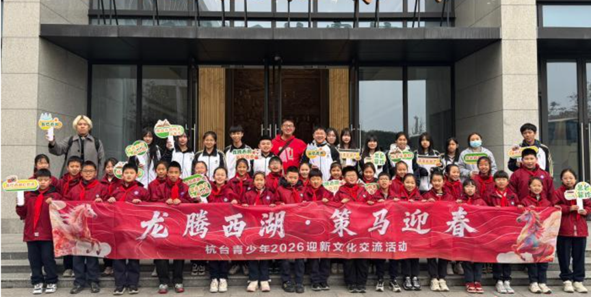 1月28日,“龙腾西湖·策马迎春”杭台青少年2026迎新文化交流活动在杭州启幕。来自台湾的舞龙交流参访团与杭州市袁浦小学师生代表相聚一堂,在参访体验中感受中华优秀传统文化的魅力。