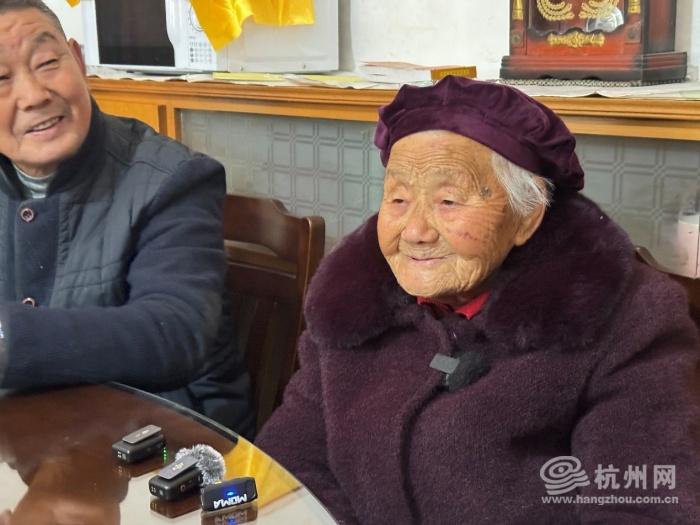 103岁的汪荷琴,身体还算硬朗,能自己做饭。70多岁的郑明兴说,前两年妈妈还时常住院,今年她的身体变好了,自己陪着她住在村里。