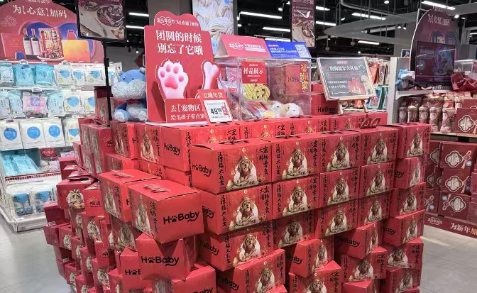 据门店相关负责人介绍,引入宠物年货板块主要基于市场需求和用户调研——宠物已成为许多家庭不可或缺的成员,而现场挑选礼盒和体验节日陈列,是线上购物难以完全替代的环节。