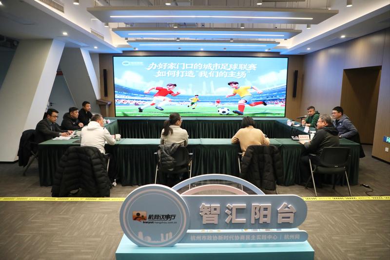 1月30日,“杭网议事厅·智汇阳台”第十六期协商活动在杭州市政协新时代协商民主实践中心举行,市文旅局、市足协相关负责人,杭州足球学院专家、市政协委员代表,以及区足协代表、球员代表、球迷代表等齐聚一堂,共同探讨如何推动杭州城市足球联赛高质量发展。