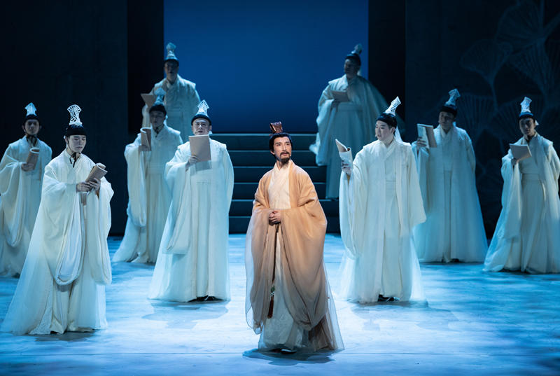 而《南孔》演绎的正是“孔洙让爵”这一典故,剧中由蒙古国皇太子南下求贤为引,多角度、多层次地描摹出衍圣公孔洙的坚守精神和儒学使命,为孔氏南宗的儒家理想与情怀写下一卷动人的长诗。《南孔》以音乐剧的方式表达南孔后人的家国怀愿与儒士风范,是对中华传统文化思想精髓的当代价值演绎。
