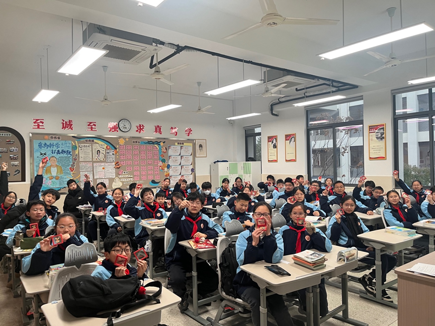 全校师生参与升旗仪式及学期总结后,重点表彰了2025年度“浙江省红船好少年”方晋同学,西湖区关工委常务副主任吴吉春为其颁发奖状和红船模型,肯定其在科技创新等方面的突出表现。活动中,翠苑派出所魏警官带来寒假安全教育讲座,涵盖防欺凌、交通、消防等内容,为假期平安护航;随后表彰了本学期先进班级,809班作为代表分享班级建设经验。