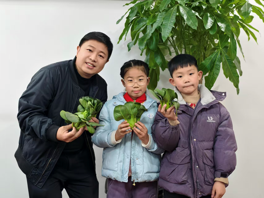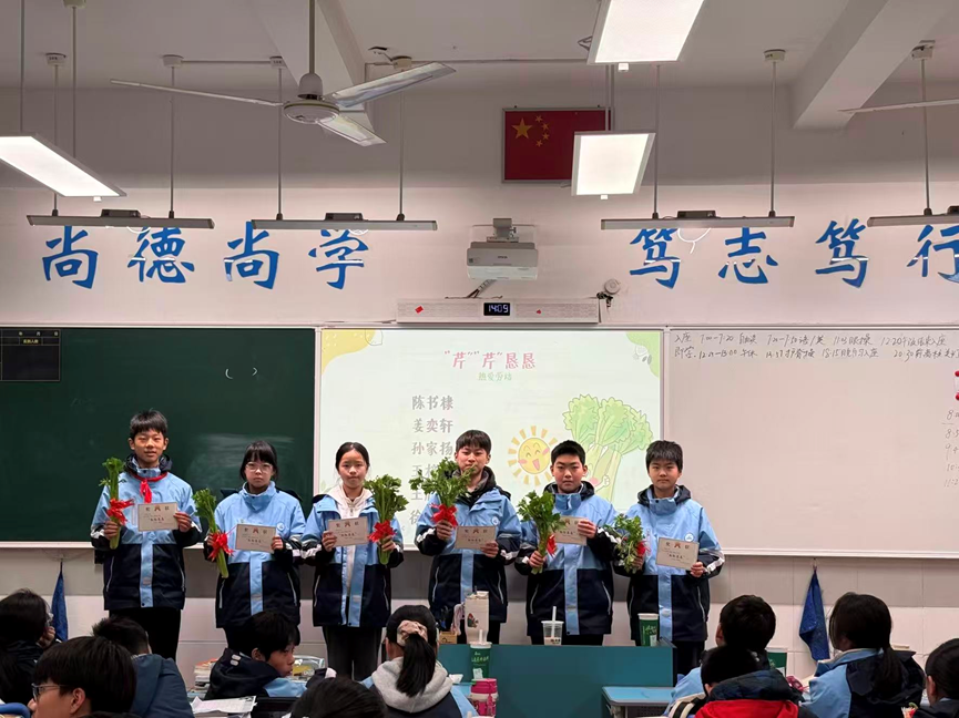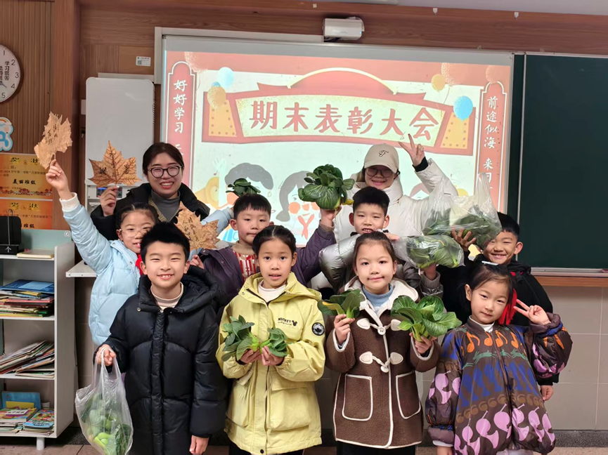 杭州师范大学东城中学(杭州市东城第二实验学校)休业式上,弘毅少年们收到一份特殊期末奖励——来自校园“毅田农场”的青菜,这是他们一学期劳动实践的生动见证。