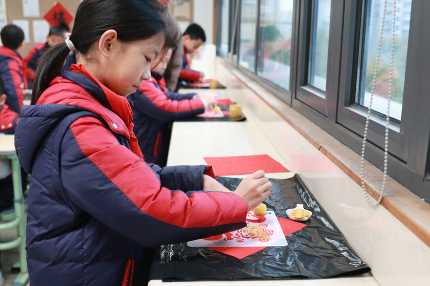当一张张亲手拓印的、墨香四溢的“福”字作品完成时,孩子们的脸上洋溢着自豪与喜悦。这份独特的“福”字,不仅是一项手工作品,更承载着对新年的美好祈愿,被孩子们珍而重之地带回家中,成为连接学校与家庭、传统与当下的一份温暖礼物。