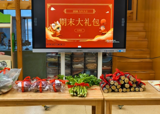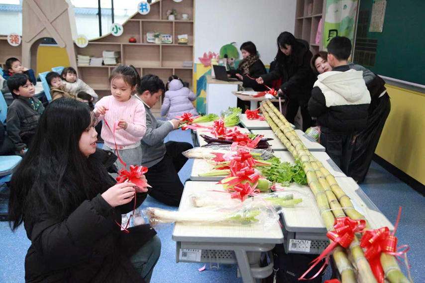 杭州市康运幼儿园永和园区以创意礼包为学期画上温暖句点。教师团队精心准备鱼、洋葱、芹菜、甘蔗等寓意吉祥的食材,将成长祝福融入其中:甘蔗象征“步步登高”,芹菜寄望“勤勉向上”,鱼寓意“年年有余”,洋葱期许“圆满和顺”。每份食材都承载着对幼儿品格塑造与生活美好的殷切祝愿,用童趣方式传递“学有所获、幸福常伴”的成长期待,让教育温度在生活化场景中自然流淌。