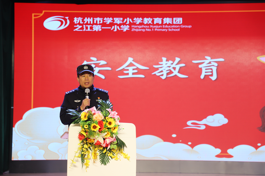 杭州市之江第一小学举行主题为“策马扬鞭辞旧岁,奋蹄安全启新程”2025学年第一学期休业式。法制副校长郑警官进行了安全主题讲话,从交通安全、生活安全、网络安全等多个方面,为同学们详细讲解了安全知识,希望同学们增强安全意识,过一个平安、快乐的寒假。