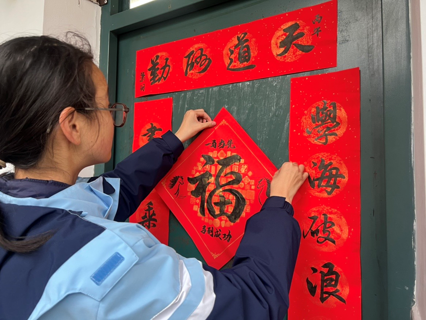 各班师生一起布置教室,贴创意春联,有的融入学科特色,有的寄托班级愿景,让教室充满喜庆祥和的新年气象。
