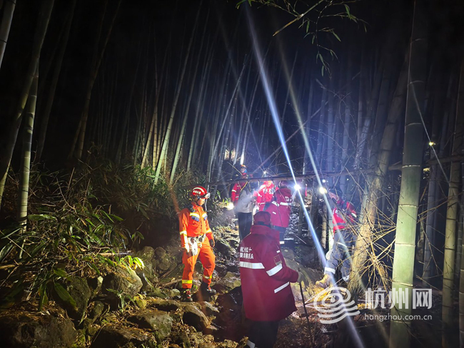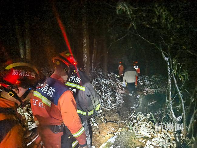 接警后,富阳区消防救援大队第一时间调派救援力量赶赴现场展开救援。考虑到夜间山林视线差、地势险,救援人员沿途仔细搜寻,经过近1小时的艰难排查,终于在小河边找到两名被困驴友,此时二人已因低温冻得瑟瑟发抖。