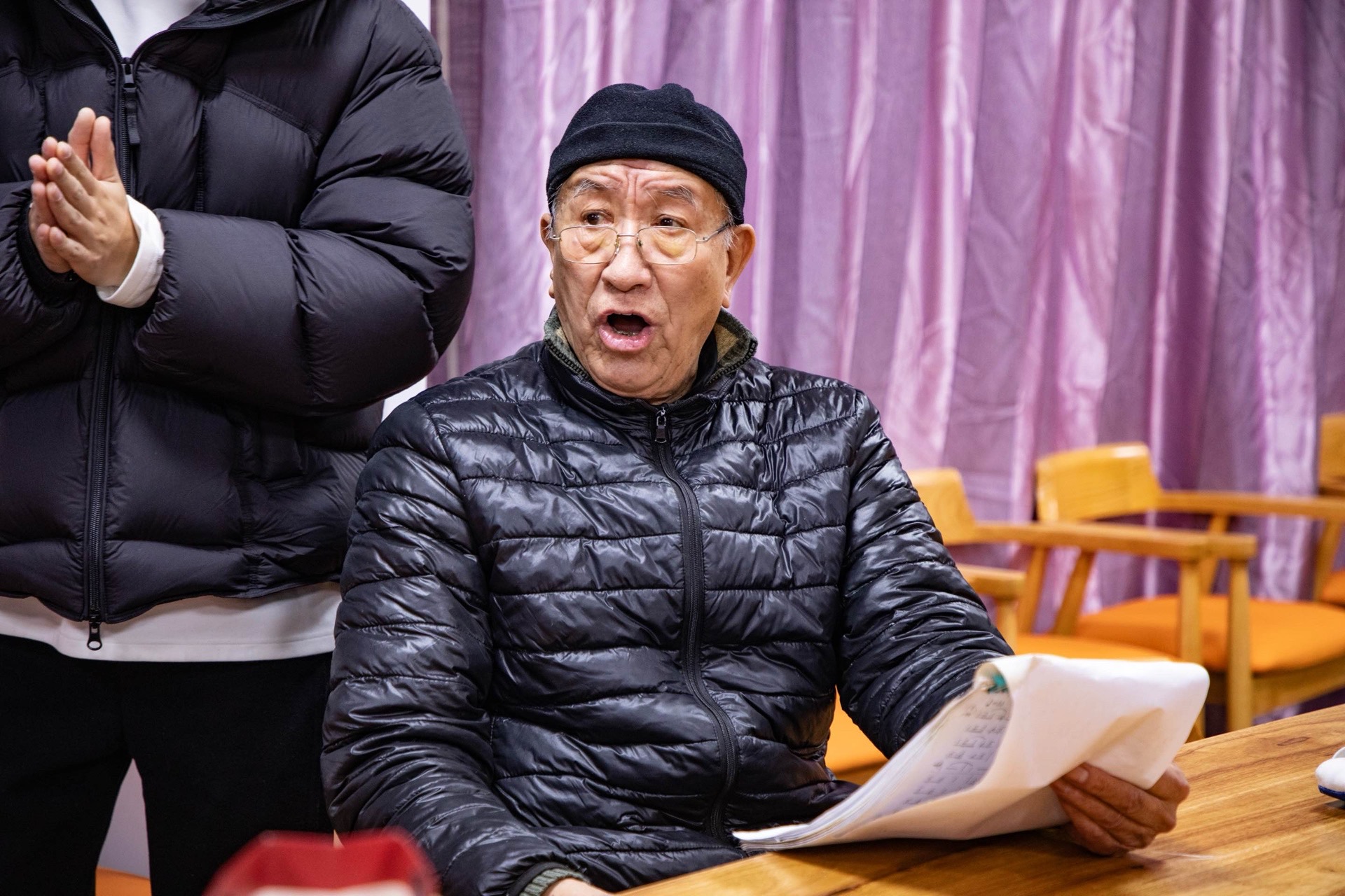 81岁的宋爷爷是乐队的主唱,排练时他气势十足、神情专注。“这首《真心英雄》年轻人唱得多,但我们不服老,也想挑战一下。”他笑着说。