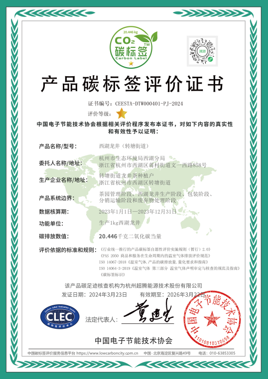 记者从发布会了解到,杭州市作为全国首批低碳试点城市,近年来在碳足迹管理方面持续探索创新,已完成144个产品碳足迹认证,发布了西湖龙井、径山茶等13个本土特色产品碳标识,并推出国内首个包装饮用水碳标签——“杭水”碳标签,为全市碳足迹管理体系构建奠定了实践基础。