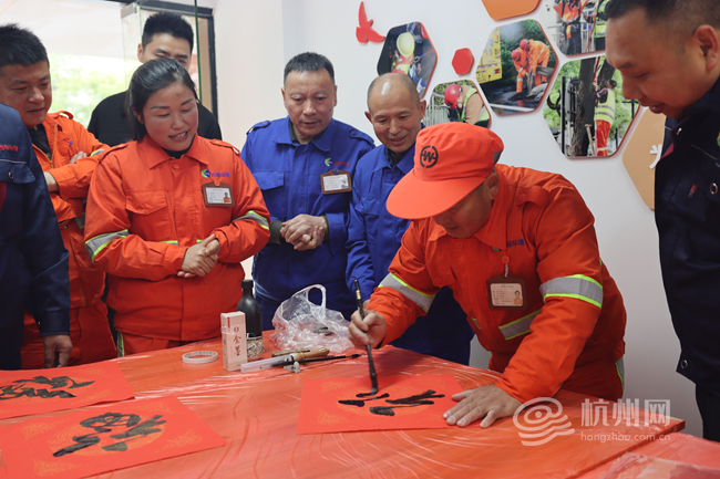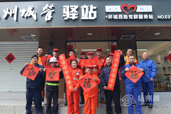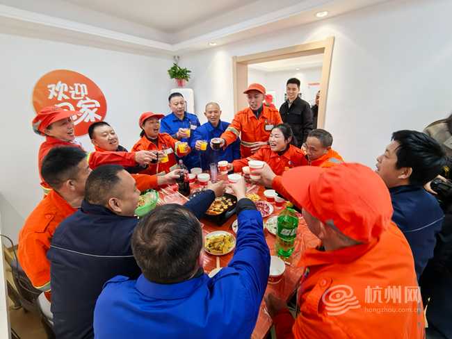当天中午在环城西路驿站,一线环卫工人、亮灯工人、市政工人等围坐一起剪窗花、吃火锅,提前庆祝丙午马年的春节。“过年不回家,”李应桥说。李师傅来自四川南充,他和妻子两人都是环城西路的道路保洁员,今年夫妇两人准备在杭州过年,“在杭州和大家一起过年很热闹”。
