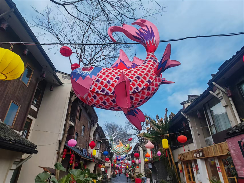 黛瓦粉墙,红灯高挂,彩色装饰点缀檐廊,小河直街的年味温柔又治愈。老杭州人漫步石板路,寻觅老底子烟火气;年轻人打卡拍照,定格运河畔文艺风情。宋韵市集、手写春联、古桥流水,这里的年味不事张扬,却暖入心底。